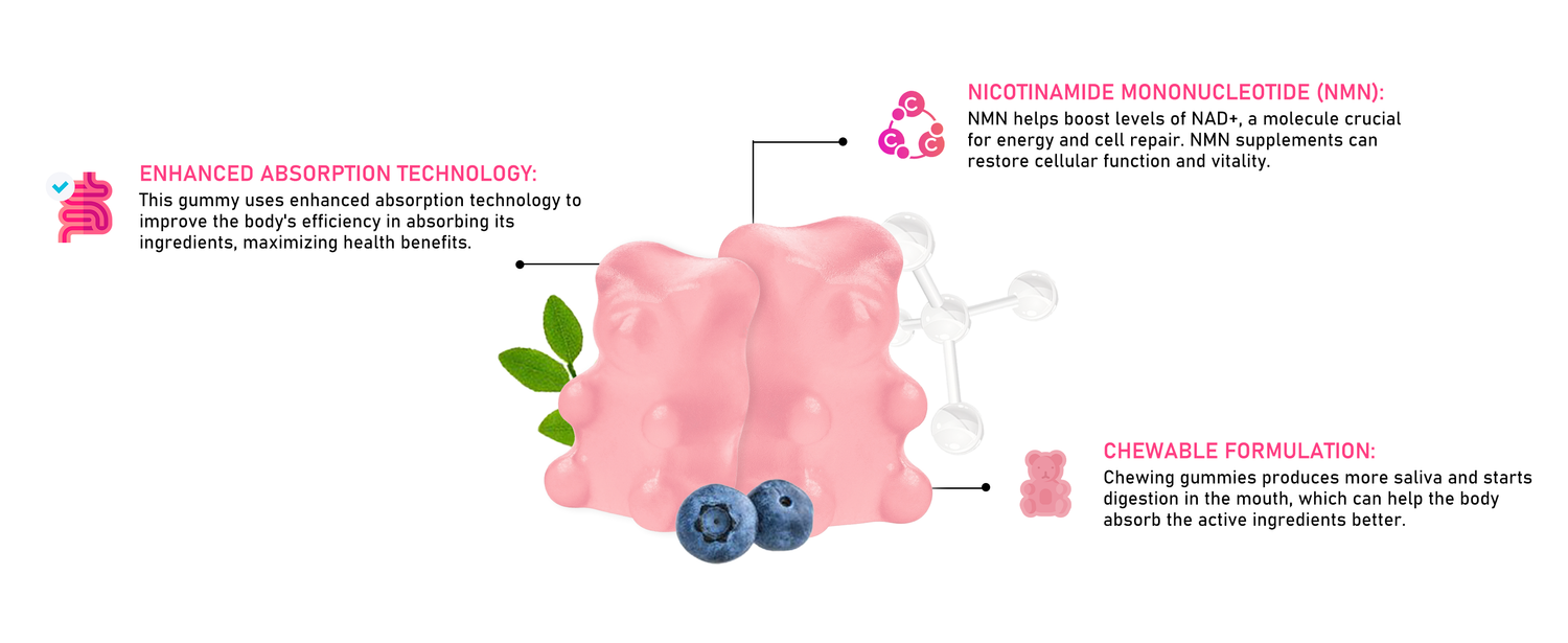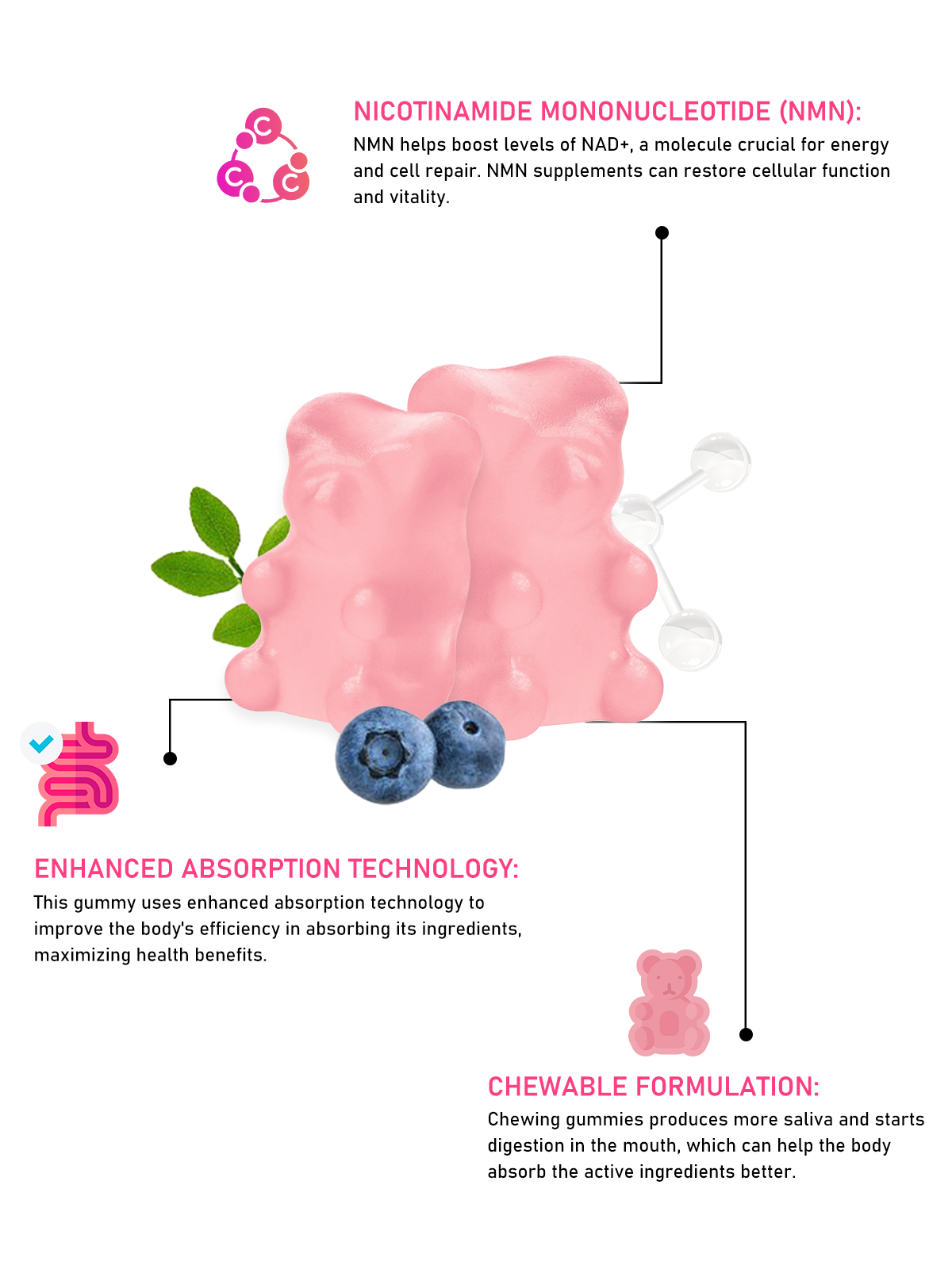 When aging starts to catch up with you, it can be tough to keep that youthful glow. Luckily, these delicious little gummies are packed with NMN, the magical secret to long-term cellular health and staying youthful.