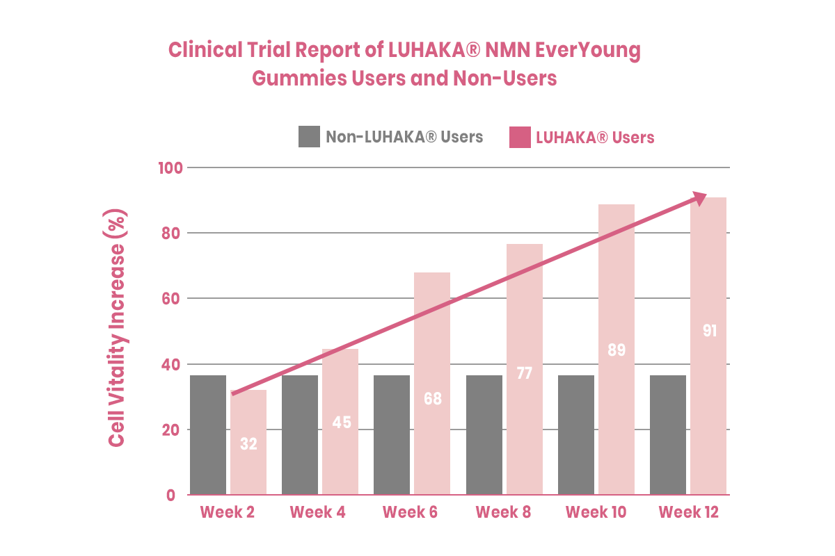 *These findings highlight the efficacy of LUHAKA® NMN EverYoung Gummies, the leading solution for supporting cellular health, enhancing skin appearance, improving sleep quality, and boosting energy levels.*